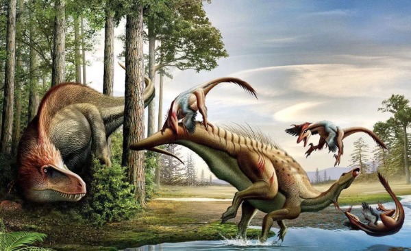 In the stomach contents of specimens of Coelophysis (a small, long-necked dinosaur) are bones from juvenile animals of the same species. At one time, these were thought to represent embryonic animals, suggesting that this small dinosaur gave birth to live young rather than laying eggs. Further research indicated that the small dinosaurs were too large and too well developed to be prehatchling young. In addition, the juveniles inside the body cavity were of different sizes. All the evidence points to the conclusion that these are the remains of prey items and that, as an adult, Coelophysis was at least in part a cannibal.