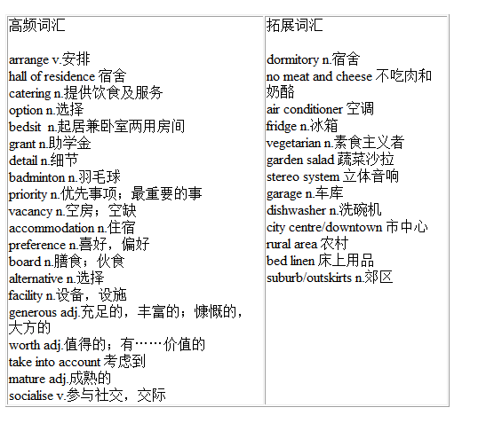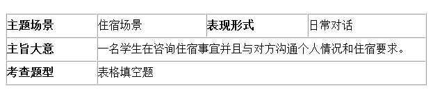 6-10题考的是学生对住宿的要求,其中涉及房屋的类型、兴趣爱好、对室友的要求、地理位置和社交的场地。
