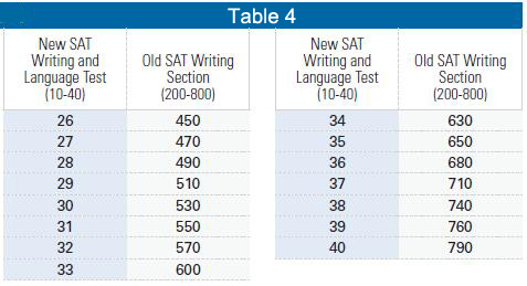 New SAT Writing and Language Test to Old SAT Writing Section Concordance Table